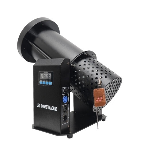 Конфетти машина 1200w RGB В наличии Хит продаж Рекомендовано Конфетти машина 1200w RGB Характеристики Краткие характеристики: Питание: 220V, 50 Гц Потребляемая мощность: 1200w Управление: беспроводной пульт, Dmx 512, клавиши управления Каналы Dmx: 5 каналов Кнопки на беспроводном пульте: 4 кнопки Навигация: светодиодное табло + 4 клавиши управления Подсветка Led: 12 светодиодов * 3w мультчип Режимы работы подсветки: – статический свет – плавная смена цветов – быстрая смена цветов – стробирование Выброс конфетти: до 8 метров Загрузка конфетти: до 500 гр. за 1 раз Габариты: 490 х 190 х350 мм Вес без конфетти: 8 кг Комплектация: генератор конфетти, сетевой кабель, беспроводной пульт управления, инструкция. Конфетти машина 1200w с подсветкой RGB – идеальное решение для запуска конфетти для тех, кто ценит время. Схема работы проста: засыпал конфетти, включил в розетку, нажал кнопку. Так же данная пушка может управляться по протоколу Dmx512. Небольшой вес и габариты, простота в использовании, дальность выдува конфетти – главные особенности данной модели. Конфетти машины используются при проведении: – Семейных праздников (юбилеи, свадьбы, детские утренники и др.); – Концертов, спектаклей, театральных, цирковых представлений; – Спортивных состязаний (например, в момент награждения участников); – Культурно массовых мероприятий. Краткие характеристики: Питание: 220V, 50 Гц Потребляемая мощность: 1200w Управление: беспроводной пульт, Dmx 512, клавиши управления Каналы Dmx: 5 каналов Кнопки на беспроводном пульте: 4 кнопки Навигация: светодиодное табло + 4 клавиши управления Подсветка Led: 12 светодиодов * 3w мультчип Режимы работы подсветки: – статический свет – плавная смена цветов – быстрая смена цветов – стробирование Выброс конфетти: до 8 метров Загрузка конфетти: до 500 гр. за 1 раз Габариты: 490 х 190 х350 мм Вес без конфетти: 8 кг Комплектация: генератор конфетти, сетевой кабель, беспроводной пульт управления, инструкция.