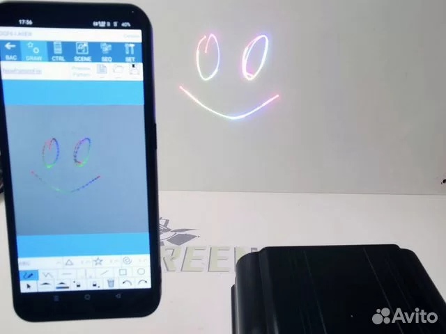 Отличный вариант за свои деньги. Повесить плоскость, повращать ее, сделать расходящиеся лучи или просто запустить танцующую фигурку - это его стезя. 15 библиотек, 450 или около того шаблонов, возможность масштабирования, вращения, движения и прочее. ► Приложение интересное, но виден китайский след, часть функций кривоваты, но в целом за эти деньги никаких вопросов быть не может. Можно нарисовать сердечко или чье-то имя. ► Пульт ДУ позволяет включать/выключать прибор, выбирать одну из библиотек или один из шаблонов. Менять цвет картинки. Приветствуется приехать и посмотреть на прибор своими глазами --------------------------------------- ► Характеристики: Корпус: металл Лазер: 500мвт RGВ Режим управления: приложение Аndrоid, пульт ДУ, DМХ Вес: около 2,5кг