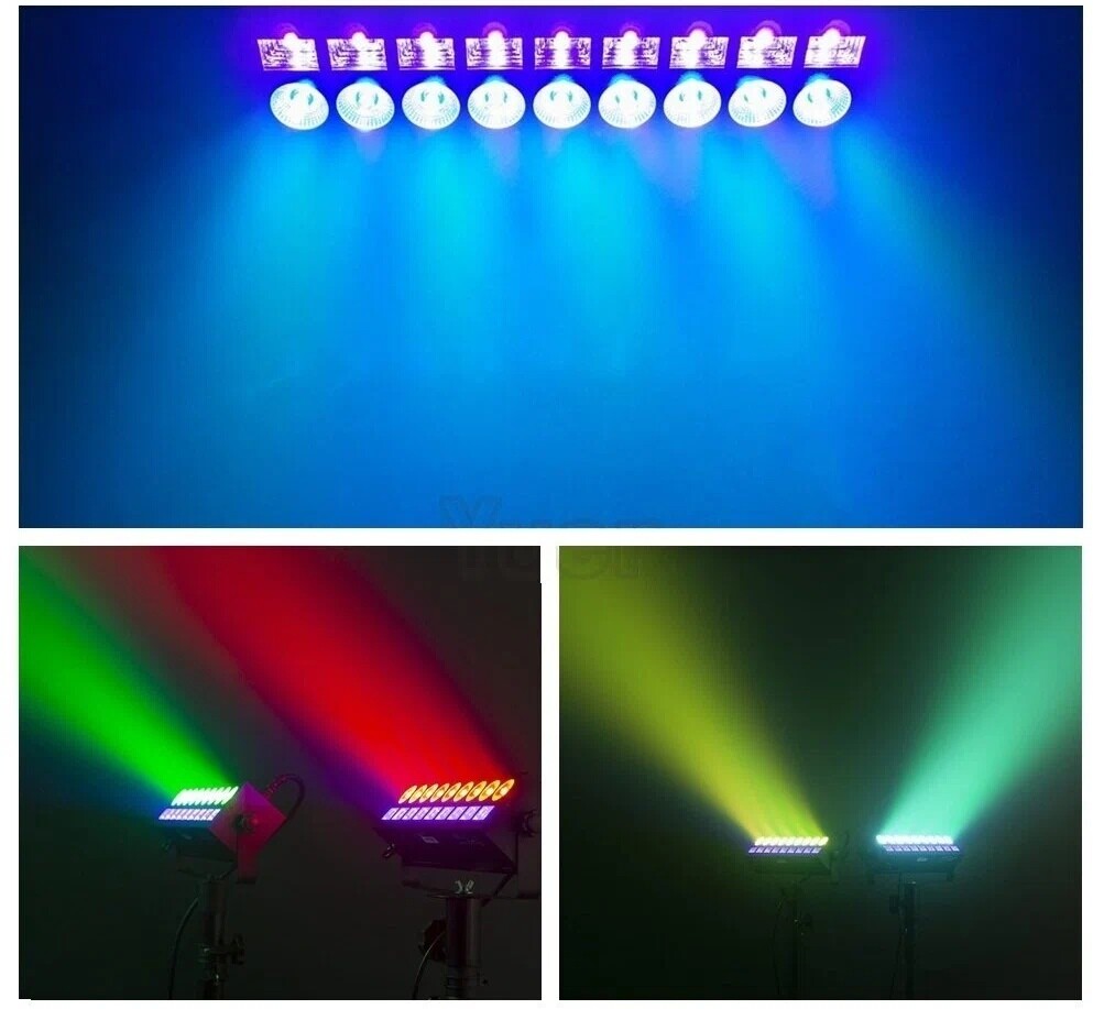Светодиодный бесшумный и компактный многофункциональный светильник заливающего света PSL-LED BAR 9 Combi. Прибор конфигурации 2в1: 9 RGBW-диодов (4в1) по 6 вт каждый + 9 UV-диодов по 3 вт каждый. Угол раскрытия луча RGBW-диодов 35* Угол раскрытия луча UV-диодов 65* 4-х кнопочный LED-дисплей Плавный диммер : 0-100% Стробо с регулировкой частоты вспышек. Пассивное (без вентиляторное) охлаждение. Управление: 9 каналов DMX512, Master/Slave, Auto, встроенные программы, звуковая активация