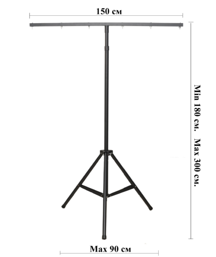 LS-40 Стойка для светового оборудования Прочная стальная стойка для световых приборов выдерживает до 50 кг и имеет максимальную высоту подъёма 3 метра. Имеет фиксатор безопасности, что немаловажно для осветительной системы. Позволяет закрепить до 12 приборов в штатные места.