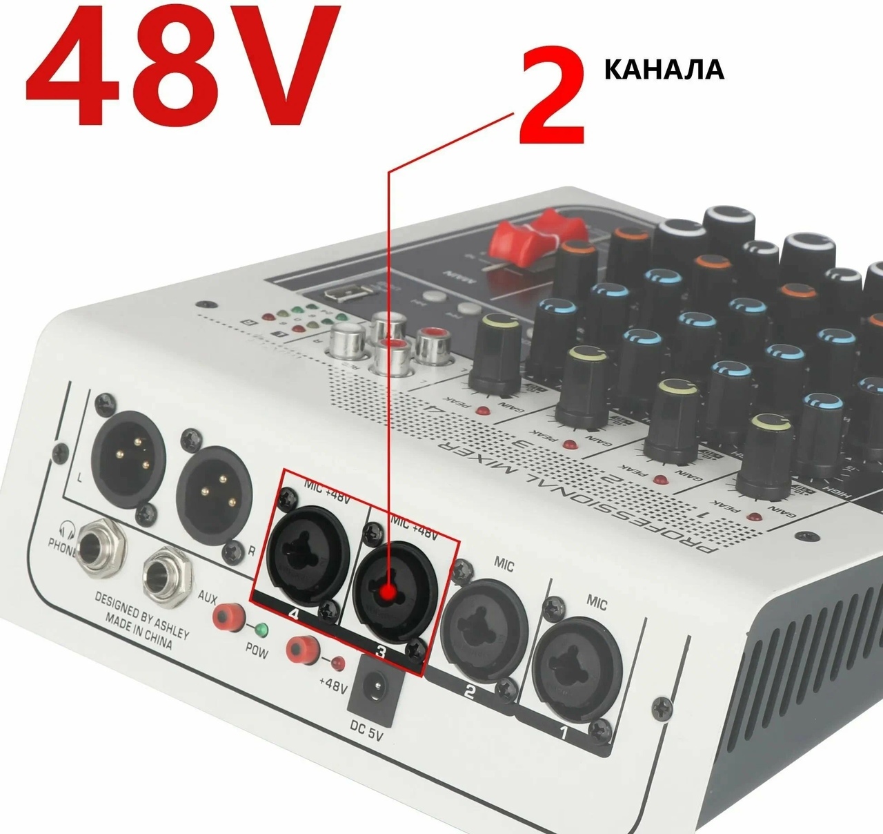 Аналоговый микшерный пульт Eltronic 10-10 Предназначен для профессионального озвучивания мероприятий, сведения и записи. Имеет 4 канала(два из которых поддерживают фантомное питание 48v для конденсаторных микрофонов) с комбинированными входами(XLR, line) на каждом из которых: -индикатор значения PEAK -пред усиление от 10 до 60 dB -трёх полосный эквалайзер (регулировка верхних частот, регулировка средних частот, регулировка низких частот) -регулятор AUX FX -панорамный регулятор -регулятор уровня громкости Так же микшерный пульт имеет возможность подключения для USB носителя с кнопками управления и встроенным дисплеем. Вход RCA (тюльпан) для управляемого источника звука и такого же типа выход для записи звука на компьютер. Фейдер уровня звука мастера, индикация, регулятор громкости в наушниках, эффект delay, AUX, выход (джек) под наушники, XLR выход для подсоединения к усилителям или акустике. Всё это есть в микшерном пульте Eltronic 10-10 Блок питания в комплекте.