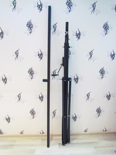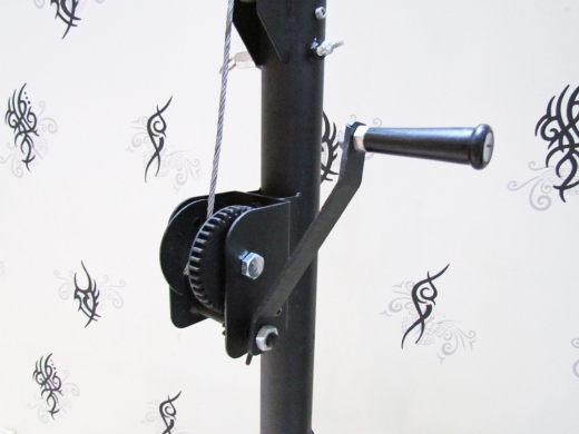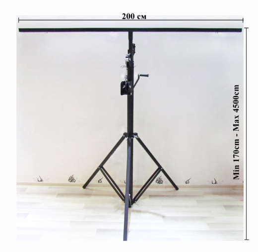 Стойки для среднего и крупного проката, выездных мероприятий, стационара. Изготовлены из высококачественной стали. Оснащены лебедкой с ручным подъёмным механизмом. Имеют Т- образную перекладину длинной 2 метра и 8 точек подвеса. Эти стойки могут похвастаться высоким качеством, выдающейся прочностью, устойчивостью и возможностью разнообразного применения.