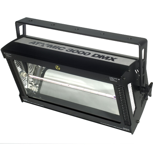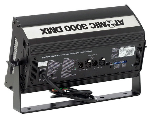 Особенности Atomic 3000w Dmx: – Интеллектуальная система регулировки температуры – Эффект ослепления с автоматическим затемнением – Управление работой вентилятора в зависимости от температурного режима – Контролируемые продолжительность вспышек, интенсивность, частота – Управление по протоколу DMX, автономное, в режиме «master/slave» – Встроенная эффективная система охлаждения прибора, позволяющая не прерывать работу для остывания устройства – Автоматически приспособляемый к напряжениям сети блок питания – Запрограммированные эффекты – Эффекты: нарастание, понижение, нарастание-понижение, случайные вспышки, молнии, импульсы, ослепление, одиночные вспышки, постоянное свечение. Технические характеристики Atomic 3000 Dmx: Питание: 90-260 В Режимы работы: Auto/Dmx Управление Dmx: 1/3/4 канала Лампа: 3000w (в комплекте) Цветовая температура: 5600 К Частота вспышек: 0-25 вспышек/сек. (50 Гц), 0-30 вспышек/сек. (60 Гц) Регулировка яркости: 0-100% Габариты: 520 х 280 х 180 мм Вес: 7 кг Комплектация: Стробоскоп 3000w, лира крепления, инструкция. Мощный интеллектуальный стробоскоп, работающий на базе лампы в 3000 Вт с DMX управлением. Лампа входит в комплект поставки. Это один из лучших подобных световых приборов в индустрии. Присутствует эффект постоянного свечения с автоматическим затиханием, а так же эффект световых вспышек с затемнением. Корпус устройства изготовлен из высокопрочной стали с порошковым электростатическим покрытием. Модель оснащена разъемами XLR. В зависимости от температуры в освещаемом помещении настраивается скорость бесшумного вентилятора, отвечающего за охлаждение. Atomic 3000 Dmx добавит взрыв света в любых клубах, дискотеках, концертных площадках.