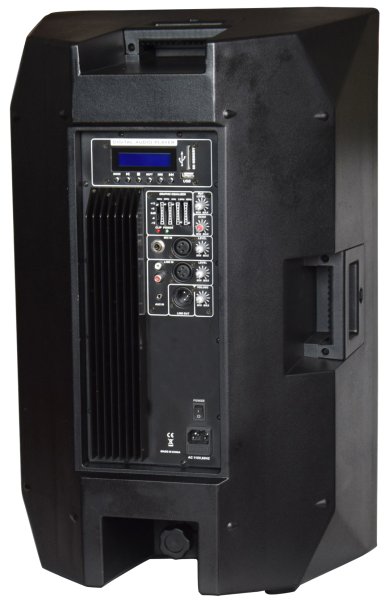 Описание модели Активная двухполосная акустическая система с USB/SD/Bluetooth/FM и со встроенным 5-полосным эквалайзером Мощность RMS/пик, Вт 300+50 Вт Класс усилителя H Bi-Amp Звуковое давление (SPL 1 Вт/1 м), дБ 124 Спикеры 15” динамик, 3” VC, 60oz магнит, 1.75” титановый драйвер Частотный диапазон, Гц 45 - 20 000 Вход RCA & XLR & 3.5 mm AUX (Line In); 6.35 mm Jack & XLR (Mic In) Выход XLR (Line Out) Материал корпуса Пластик Размер (ШхВхГ), мм 425 х 695 х 395 Вес, кг 21,3 Комплектация IR пульт в комплекте Страна-производитель Китай Габариты упаковки Длина 485 мм Ширина 450 мм Высота 760 мм Вес 23,2 кг
